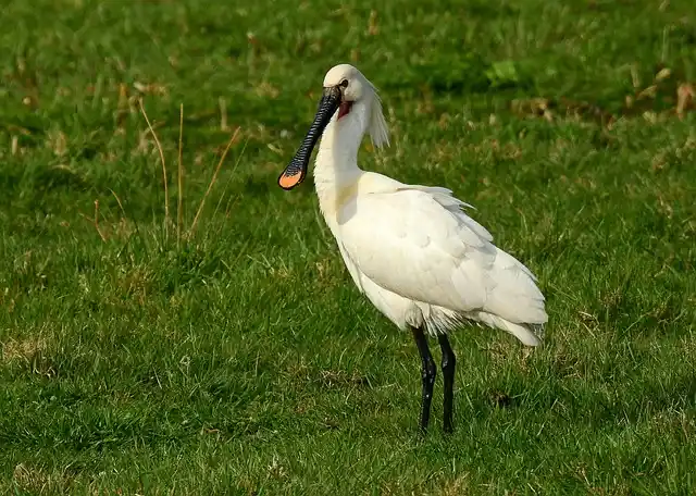 • De lepelaar is een grote witte vogel met een lange lepelvormige snavel.