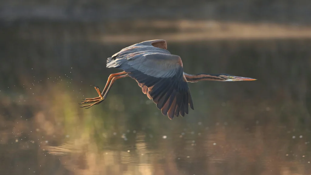 • De purperreiger heeft een bruine oranje nek met zwarte strepen.