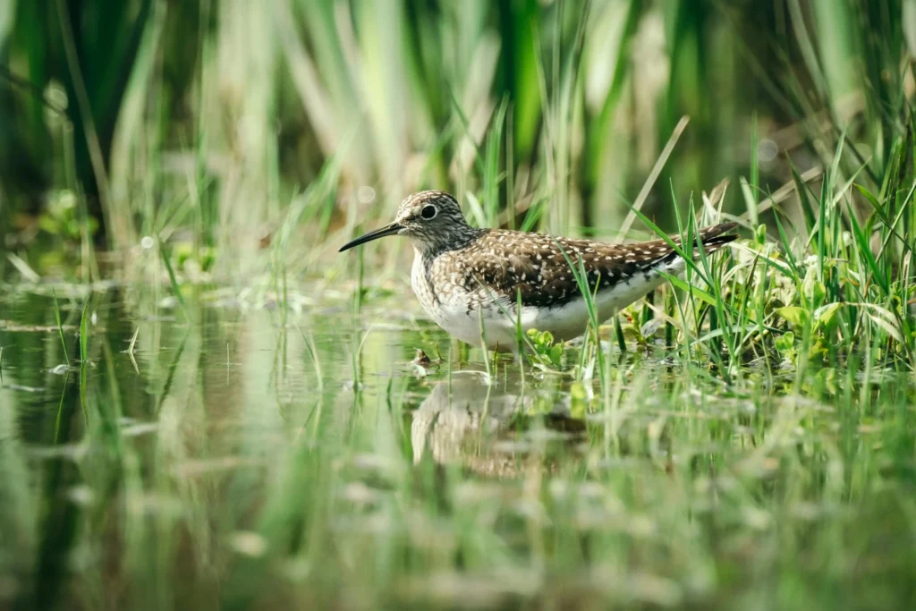- De bosruiter is een kleine ruiter met gele poten en een korte snavel.