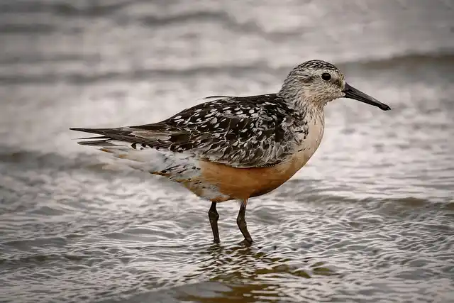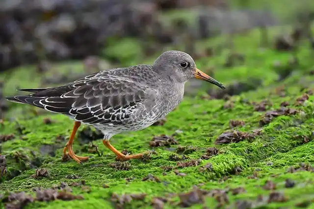 - De paarse strandloper heeft een donker verenkleed en een lichte buik.